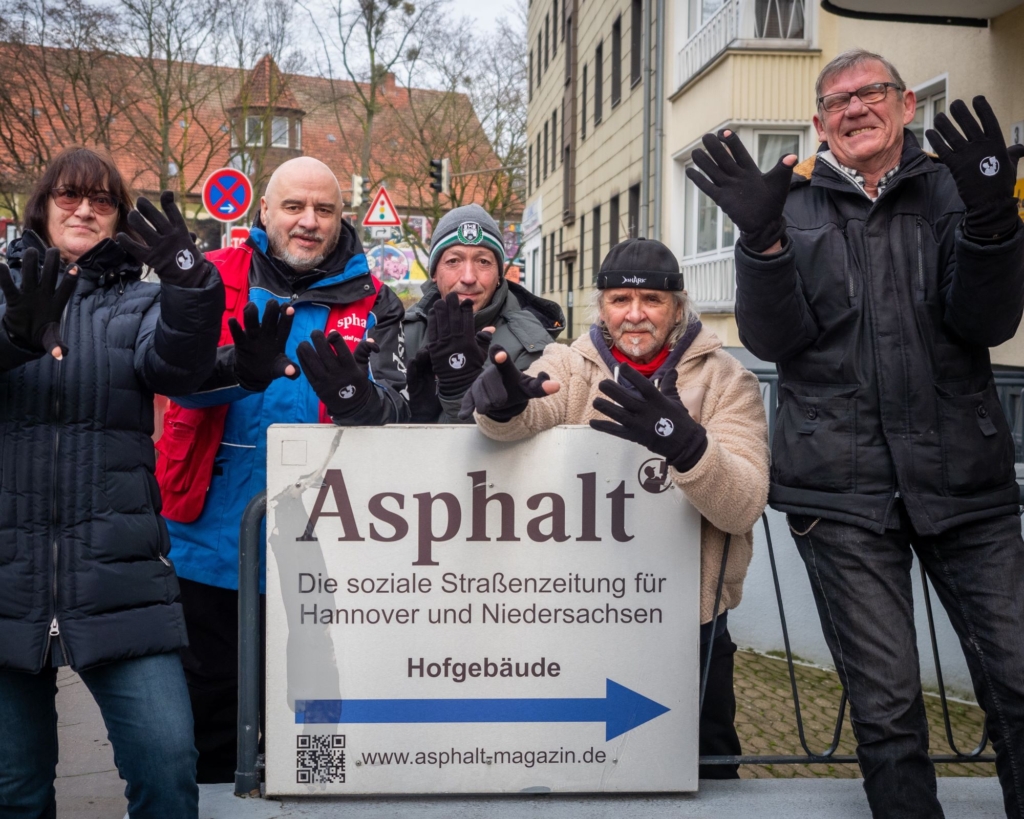 Ihre Spende hilft direkt den Menschen, die Asphalt auf den Straßen verkaufen. Wir finanzieren damit zum Beispiel Verkaufsjacken, Ausweise und Materialien für unsere Verkäuferinnen und Verkäufer. Auch kleine Hilfen im Alltag, warme Getränke, Beratung oder Unterstützung in akuten Notlagen werden dadurch möglich.